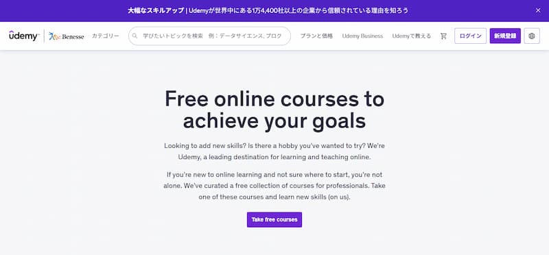 Udemyは、世界中の講師が教えるオンライン動画学習プラットフォームで、Webマーケティング分野でも多数の無料コースが提供されています。デジタルマーケティングの基礎からSEO、Web広告運用まで、幅広いテーマを学習できます。