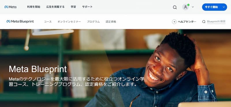Meta Blueprintは、Meta社が提供する公式の無料学習プラットフォームで、Facebook、Instagram、Messenger、WhatsAppなどを活用したマーケティングスキルを体系的に学べます。100以上のコースが用意されており、初心者から上級者まで対応しています。