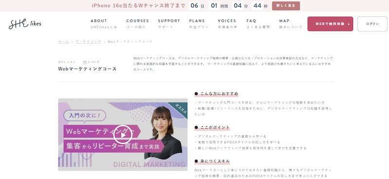 SHElikes(シーライクス)は、45以上の職種スキルが定額で学び放題の女性向けキャリアスクールです。