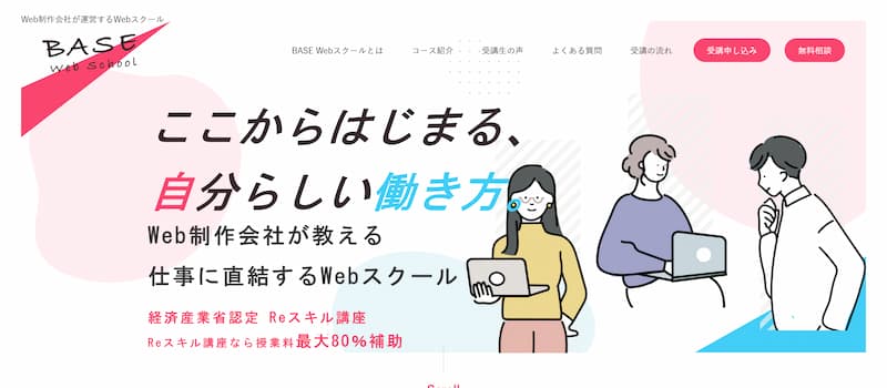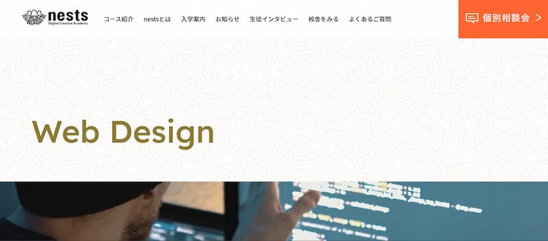 デザインの基礎から実践的なWebサイト制作まで、現役デザイナーの丁寧なサポートのもとで学習を進められます。