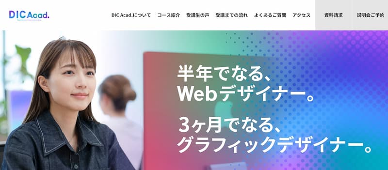 学べるスキル | Photoshop、Illustrator、HTML/CSS、JavaScript、Bootstrap、レスポンシブデザインなど |